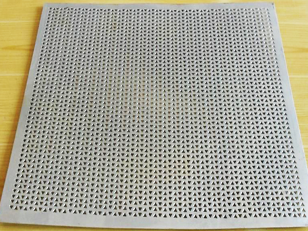 三角形沖孔網(wǎng)所選用的材質有:低碳鋼板、不銹鋼板、銅板、鎳板、鋁板等金屬板材 。