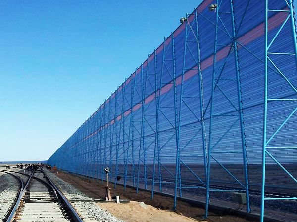 主要用于煤礦,焦化廠,電廠等企業工廠的儲煤廠的防風抑塵;港口,碼頭儲煤廠及各種料場;鋼鐵、建材、水泥等企業各種露天料場的抑塵;農作物防風,沙化天氣防塵等惡劣環境;鐵路、公路煤炭集運站儲煤場、建筑工地、道路揚塵、高速公路兩側等。單層擋風抑塵墻抑塵效果可達65~85%,雙層擋風抑塵墻效果可達95%以上。